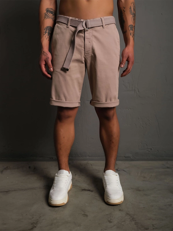 Herren Kurze Stoffhose mit Gürtel Hellbraun Bolf 0010