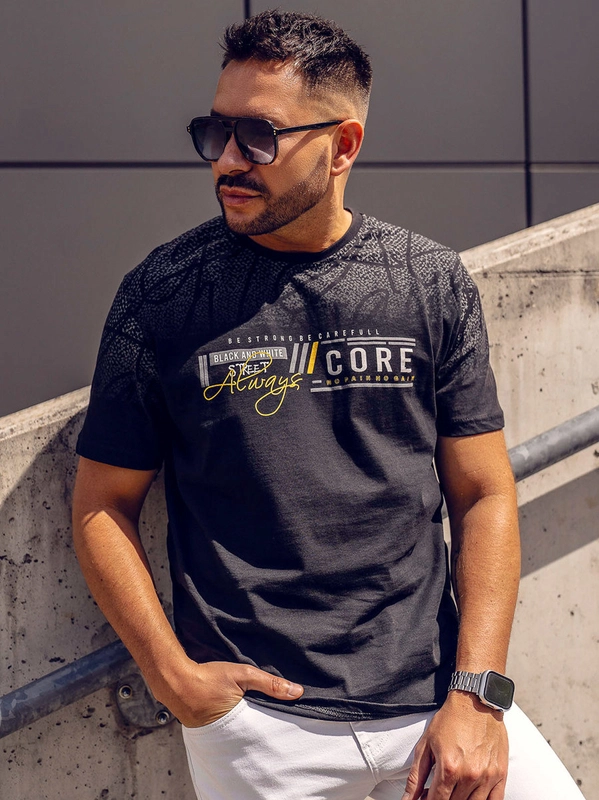 Herren Baumwoll T-Shirt mit Print Schwarz Bolf 14772A