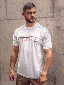 Herren Baumwoll T-Shirt mit Motiv Weiß Bolf 14772A