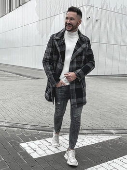 Herren Wintermantel Warmgefüttert Kariert Schwarz Bolf 1193-1