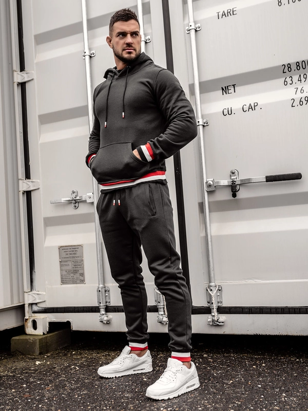 Herren Trainingsanzug mit Kapuze Sport Set Zweileiler Schwarz Bolf 8C60