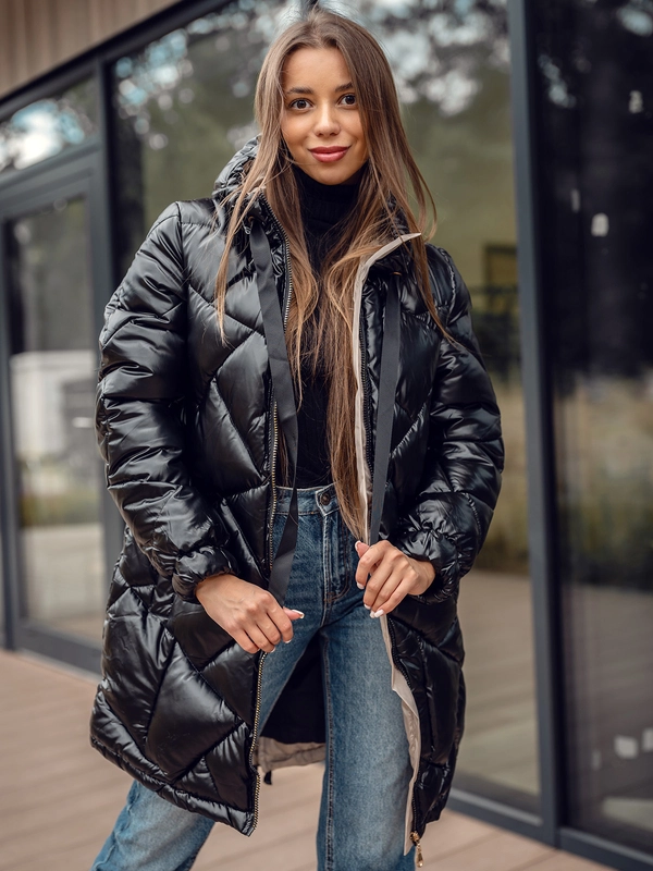 Damen Gepolsterte Winterjacke mit Kapuze Schwarz Bolf 5M3138A1