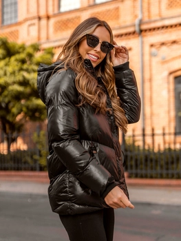 Damen Gepolsterte Winterjacke mit Kapuze Schwarz Bolf 6830