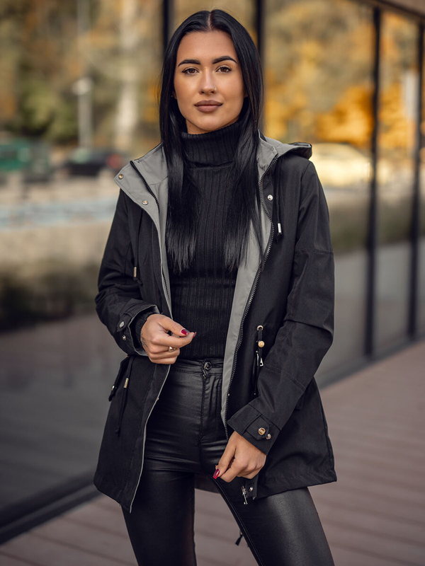 Damen Übergangsjacke Zweiseitiger Parka mit Kapuze Schwarz Bolf 16M9081A