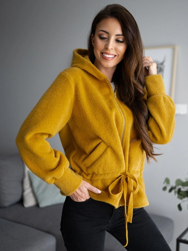 Damen Jacke Kurzer Mantel mit Kapuze Gelb Bolf 9320