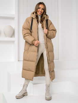 Damen Lange Gepolsterte WInterjacke Mantel mit Kapuze Camel Bolf 5M3173A