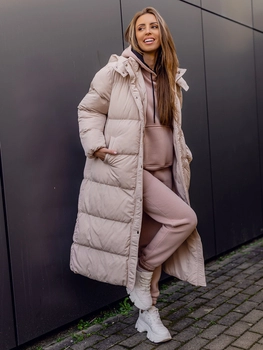Damen Lange Gepolsterte Winterjacke Mantel mit Kapuze Beige Bolf MB0276A