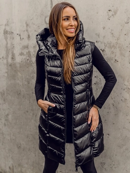 Damen Lange Steppweste mit Kapuze Schwarz Bolf 7042