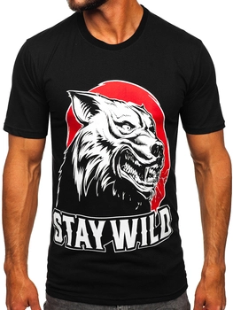 Herren Baumwoll T-Shirt mit Motiv Schwarz Bolf 143021