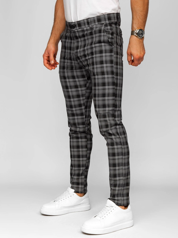 Herren Stoffhose Chinos Kariert Schwarz Bolf 184175