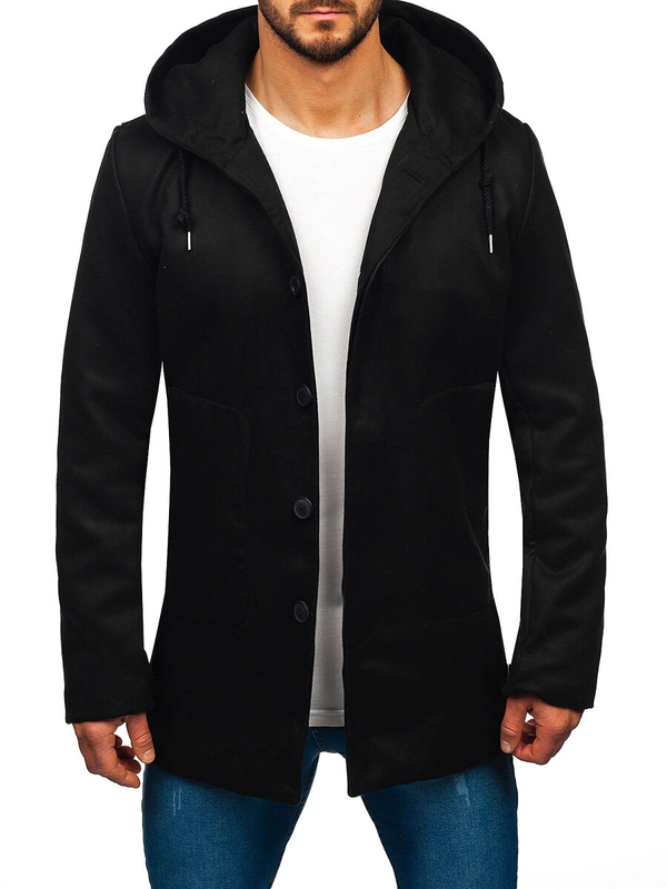 Herren Wintermantel mit Kapuze Schwarz Bolf 79B3A1-197
