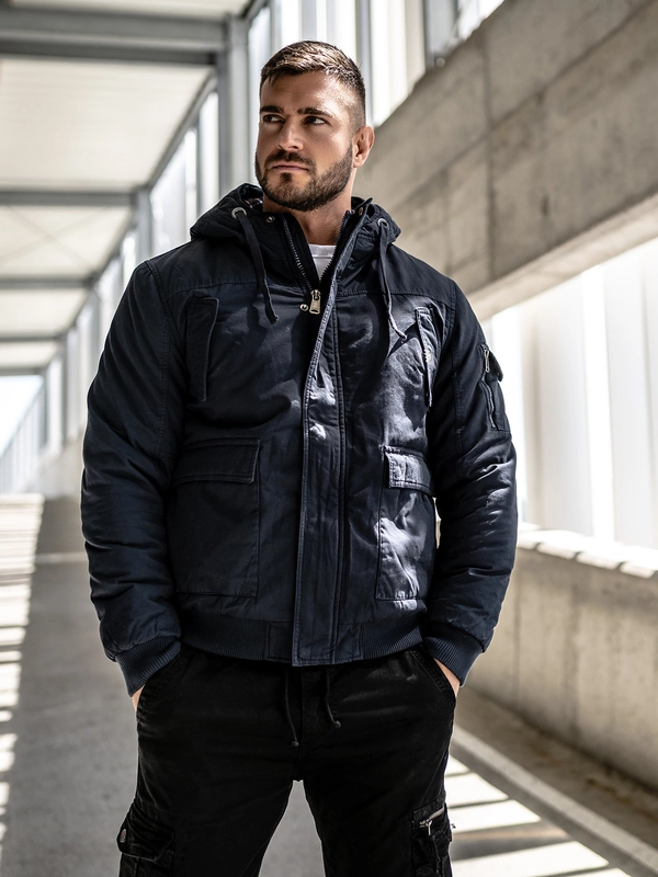 Herren Gepolsterte Übergangsjacke Bomberjacke Dunkelblau Bolf MY-02A