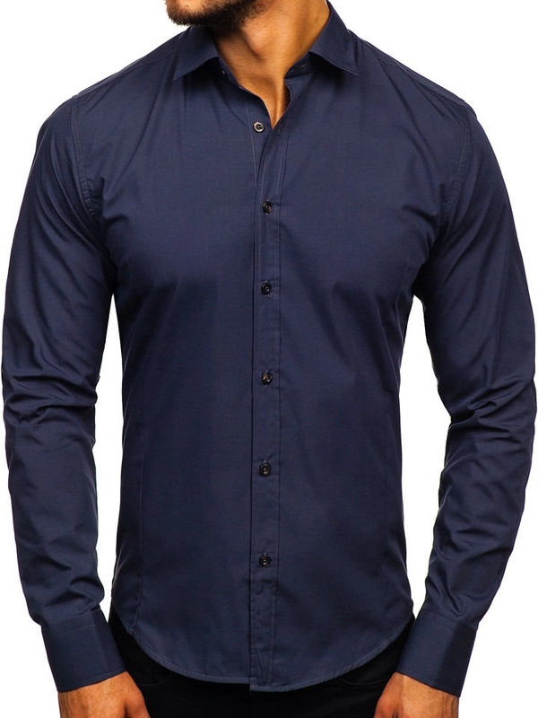 Herren Elegantes Langarmhemd Dunkelblau Bolf 1703