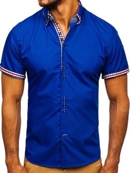 Herren Hemd Baumwoll Hemd Kurzarm Azurblau Bolf 20501
