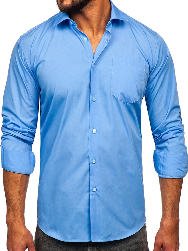 Herren Langarm Hemd Elegant Azurblau Bolf 3701