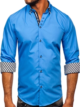 Herren Hemd Langarm Elegant Azurblau Bolf 20715