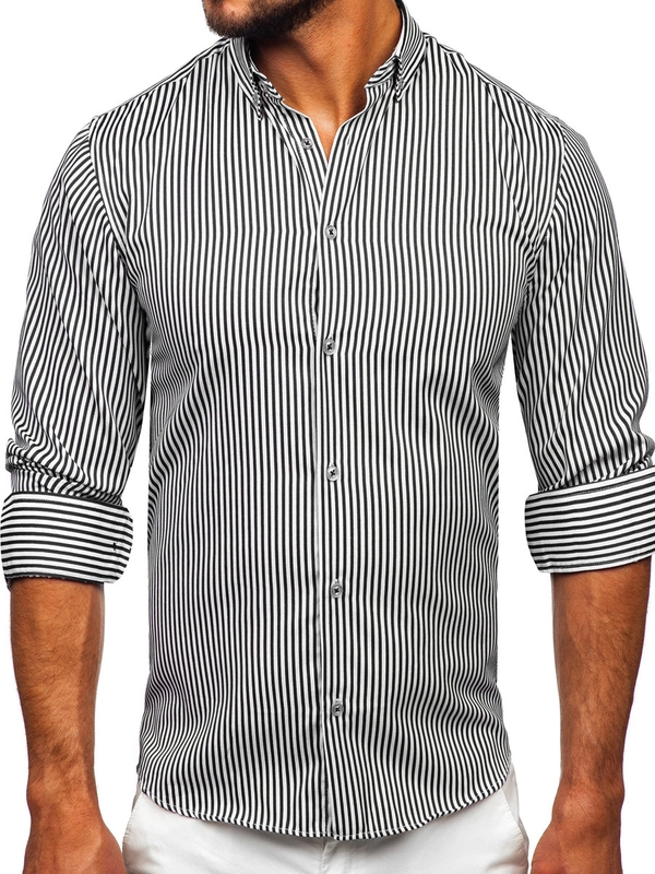 Herrenhemd Elegent Gestreift Langarm Schwarz Bolf 0909