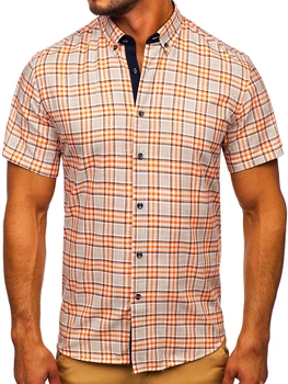 Herren Hemd Kurzarm Kariert Orange Bolf 201501