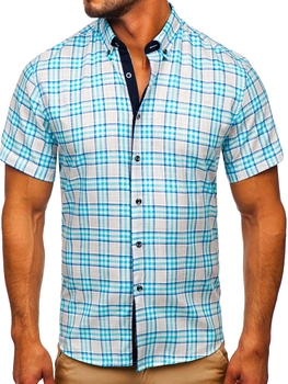 Herren Hemd Kurzarm Kariert Azurblau Bolf 201501