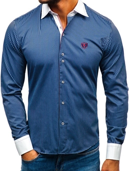 Herren Hemd Gestreift Langarm Dunkelblau Bolf 1771