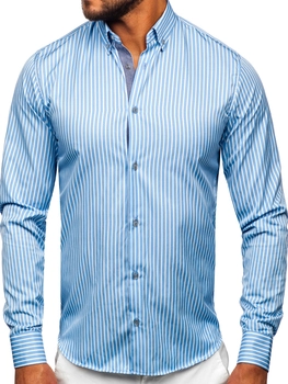 Herren Hemd Langarm Gestreift Azurblau Bolf Bolf 22730