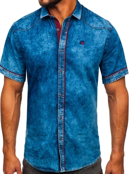 Herren Jeanshemd Kurzarm Blau Bolf 19640