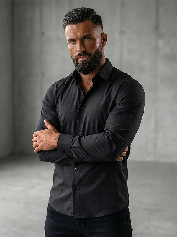Herren Elegantes Langarmhemd Schwarz Bolf 1703