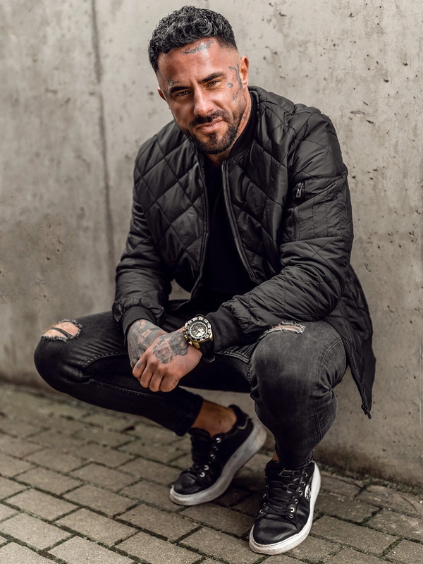 Herren Gepolsterte Übergangsjacke Bomberjacke Schwarz Bolf MY-01