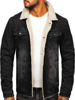 Herren Warmgefütterte Jeansjacke Trucke mit Teddy Fell Schwarz Bolf 1158A