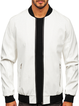 Herren Kunstlederjacke Bomberjacke Weiß Bolf 7110A2