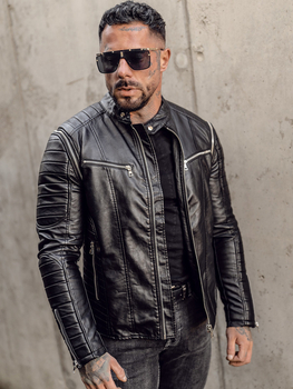 Herren Kunstlederjacke Schwarz Bolf 1073