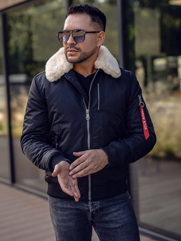 Herren Winterjacke Pilotenjacke Schwarz Bolf 1787