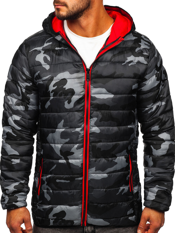 Herren Übergangsjacke Sportjacke Camo Schwarz-Grün Bolf SM83