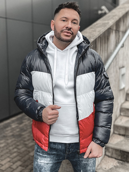 Herren Gepolsterte Winterjacke Dunkelblau-Rot Bolf 6593