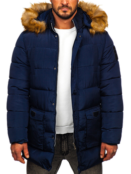 Herren Gepolsterte Winterjacke Parka Dunkelblau Bolf 7330
