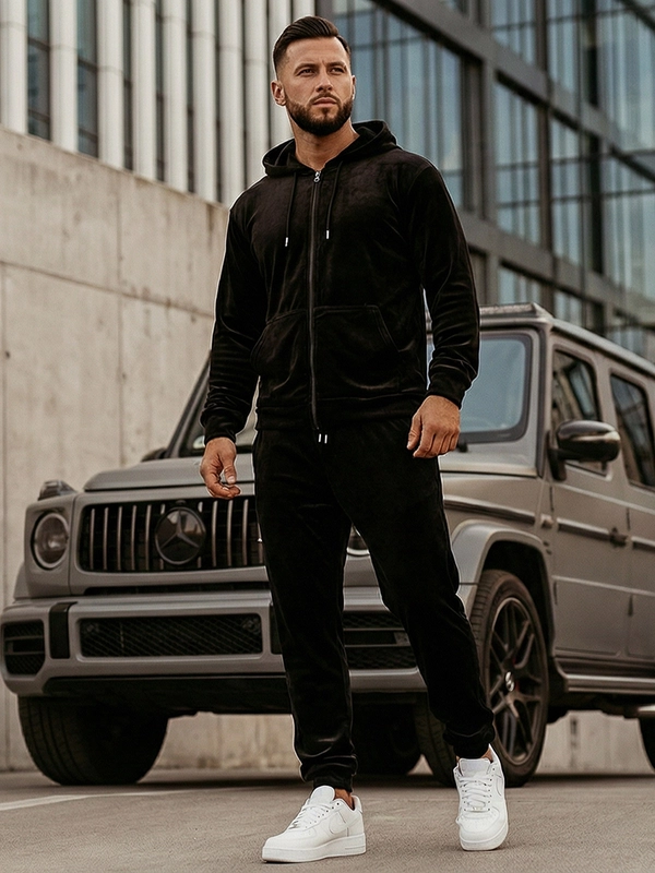 Herren Velours Zweiteiler Freizeitanzug mit Kapuze Schwarz Bolf 8C1538