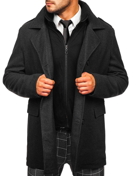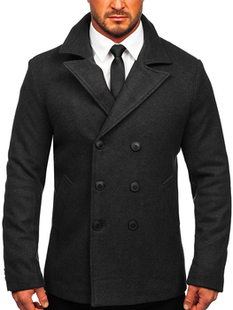 Herren Zweireihiger Wintermantel mit Stahkragen Schwarzgrau Bolf 1048