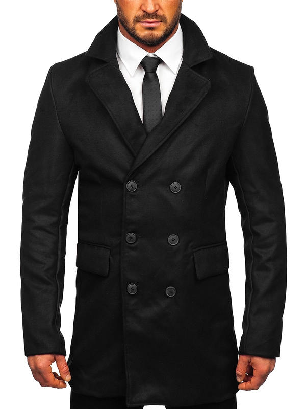 Herren Zweireihiger Wintermantel Schwarz Bolf M3142A