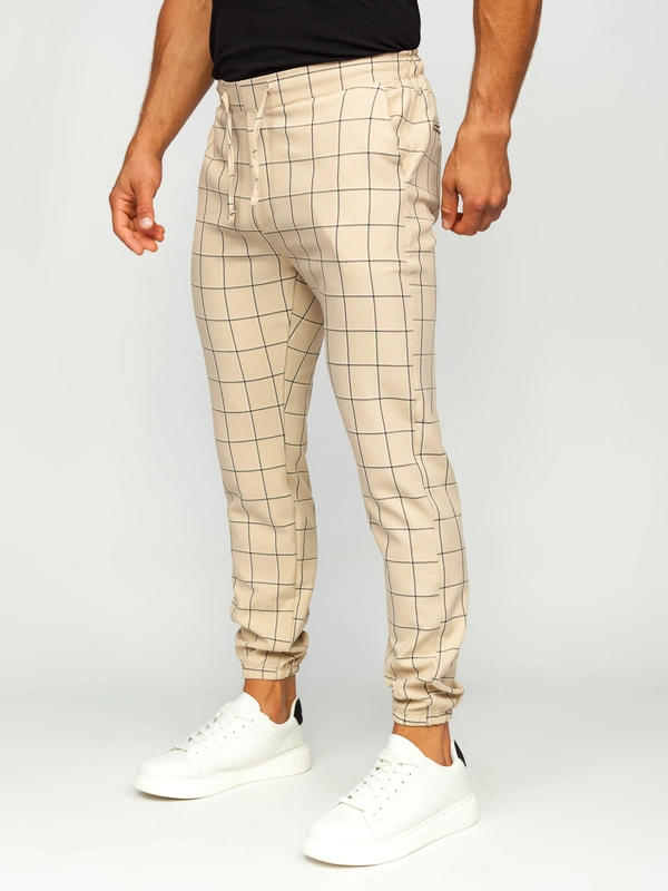 Herren Stoffhose Joggers Kariert Beige Bolf 0064