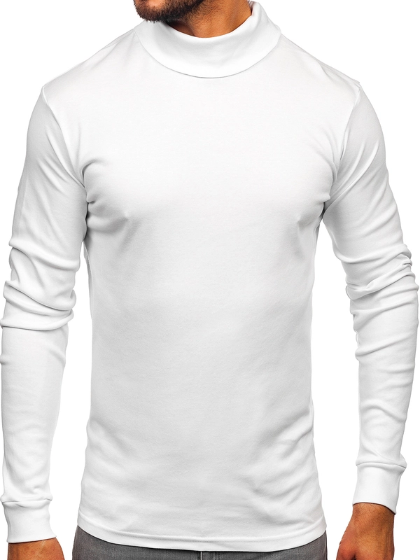 Herren Baumwoll Rollkragenpullover basic Weiß Bolf 535