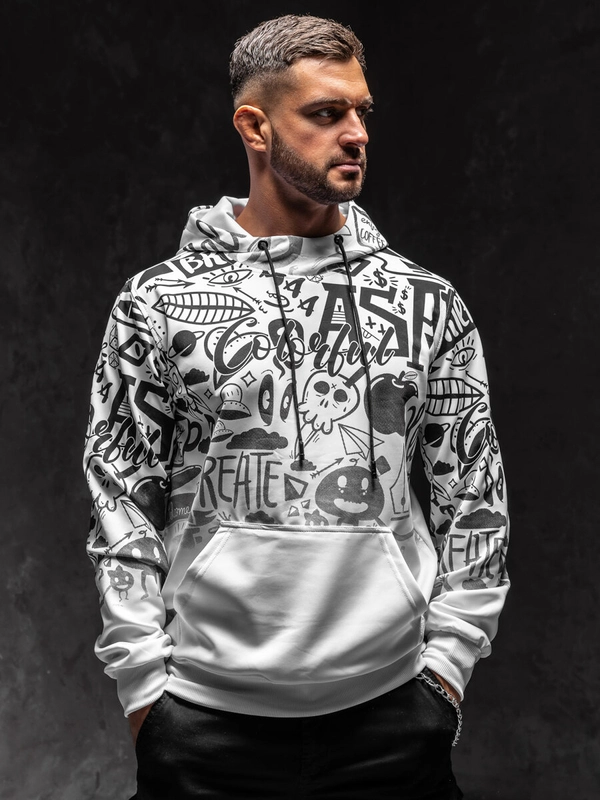 Herren Kapuzenpullover mit Motiv Weiß Bolf 6424