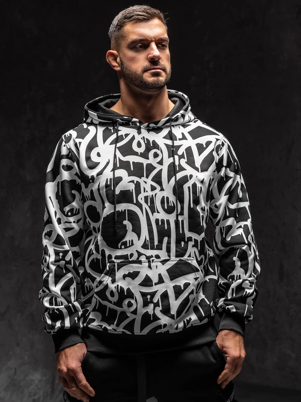 Herren Kapuzenpullover mit Kängurutsche und Motiv Schwarz-Weiß Bolf 8B1152A