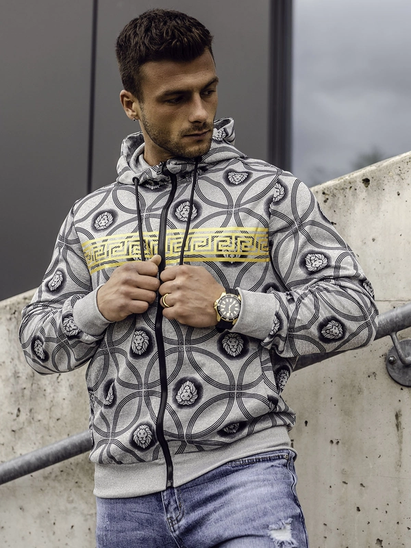 Herren Kapuzenpullover mit Reißverschluss Grau Bolf 07