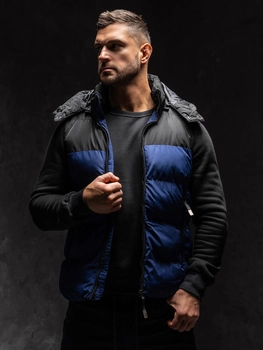 Herren Warme Steppweste mit Kapuze Dunkalblau Bolf 9969