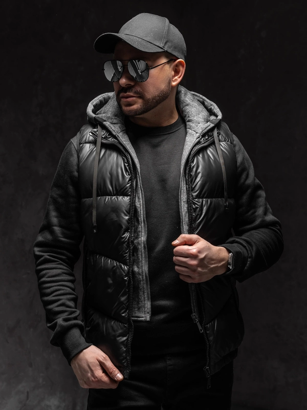 Herren Weste mit Kapuze Schwarz Bolf 2908