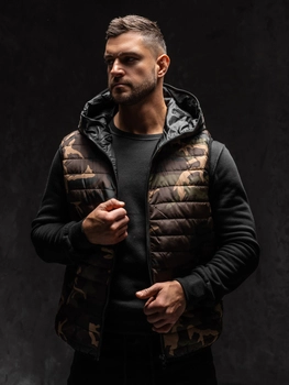 Herren Steppweste mit Kapuze Camo Khaki Bolf 7106A1