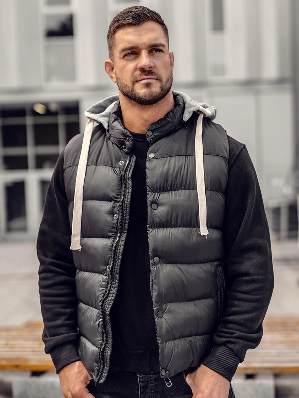 Herren Weste mit Kapuze Schwarz Bolf 2908